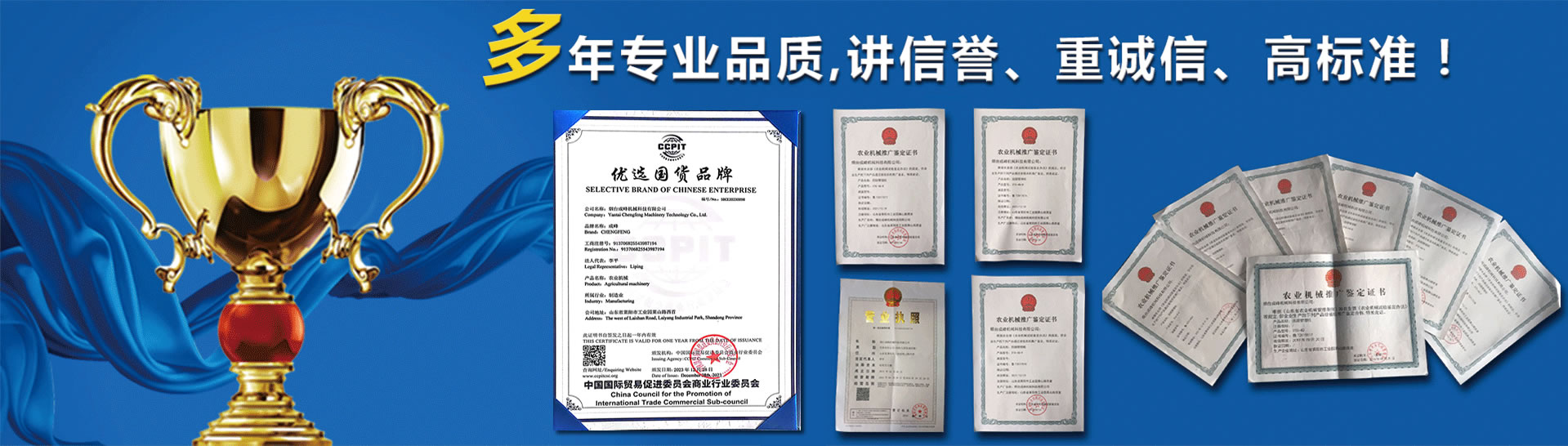 點擊進入>煙臺成峰機械科技有限公司,成立于2010年4月,是農(nóng)林機械專業(yè)生產(chǎn)廠 家。十余年專注果園管理機械、大棚機械的研發(fā)、生產(chǎn)與銷售。產(chǎn)品暢 銷全國三十一個省市、自治區(qū),60%的產(chǎn)品出口歐、美、日、韓等多個國家。高新技術(shù)企業(yè),有經(jīng)驗豐富的產(chǎn)品研發(fā)團隊,有十款產(chǎn)品通過國家農(nóng)機推廣鑒定,享有國家農(nóng)機補貼。公司現(xiàn)有激光切割機械、機器人焊 接、數(shù)控加工設(shè)備、表面處理設(shè)備數(shù)十臺,具備萬臺以上農(nóng)林機械的生 產(chǎn)能力。目前我們與山東農(nóng)業(yè)大學(xué),山東科技大學(xué)等多所高校達(dá)成產(chǎn)學(xué)研合作, 與山東農(nóng)機研究院、農(nóng)科院等多家科研單位達(dá)成產(chǎn)品研發(fā)合作,為傳統(tǒng)農(nóng)機的智能化賦能插上翅膀。我們遵循誠信、創(chuàng)新、合作、共贏的經(jīng)營理念,在可持續(xù)發(fā)展的道路上 穩(wěn)步前行。 查看詳情>